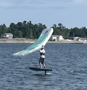 I was able to get going on the 7m Duotone Slick on the North Seek 138L wingfoil board with the 2100 foil underneath. I did a few runs with some show off jibes by the point. After going out farthest on my longest run the wind dropped off quickly. In the chart it is clear that at 5:30 the wind shifted 90 degrees in 10 minutes and now was completely coming from the north. I was able to get up on the foil a bit in the now north wind!