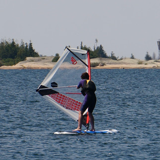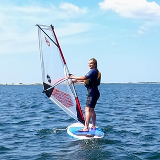 Our 16 year old had been doing well but was now losing a lot of ground downwind. He'd gotten good so quickly, he forgot some basics. If you hold the sail perfectly where you would if you were moving, but you haven't started moving yet, you just slide downwind. Go back to neutral, slowly sheet in and start sailing... Keeping your eyes looking just a bit upwind helps too.